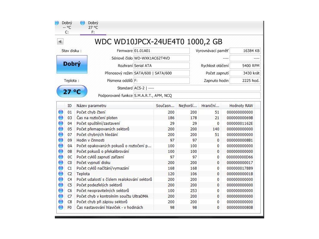 Testováno na vadné sektory, bez závad. Viz. foto výpisu z programu Crystal Disk.