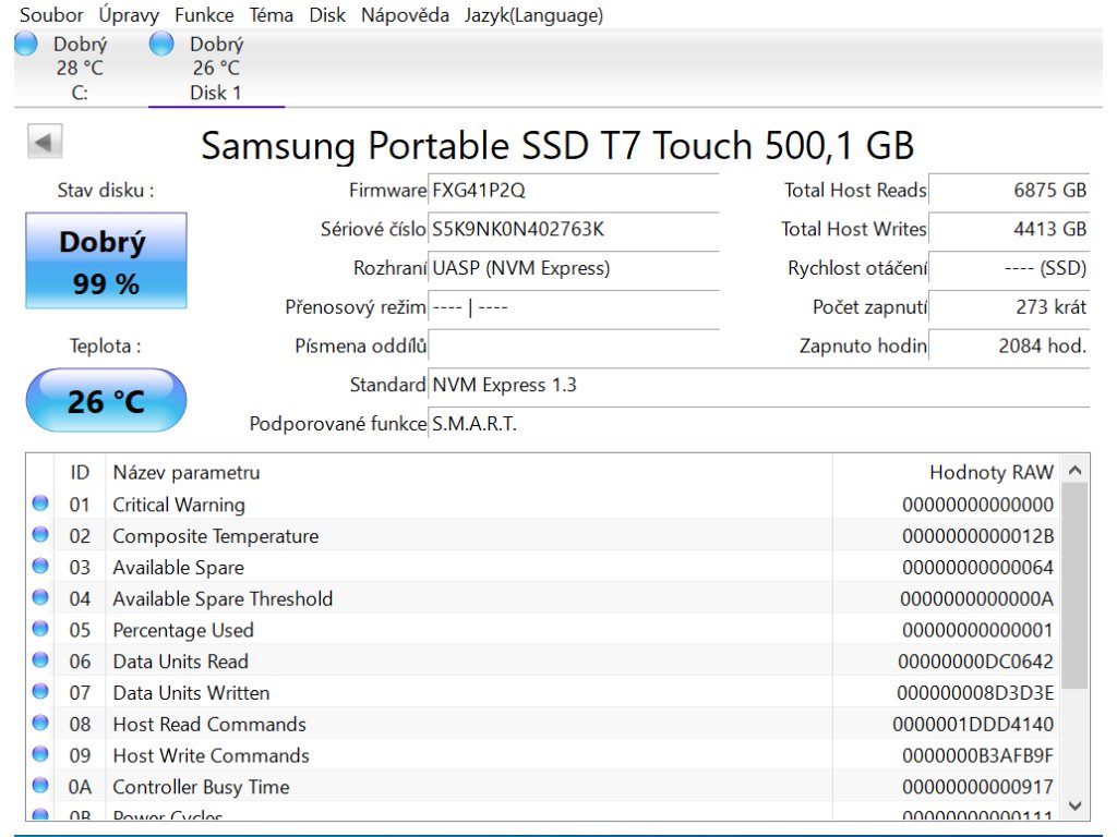 Stav perfektní, viz. foto z diagnostického programu. Včetně datového kabelu USB-C.