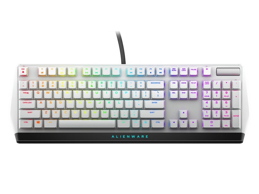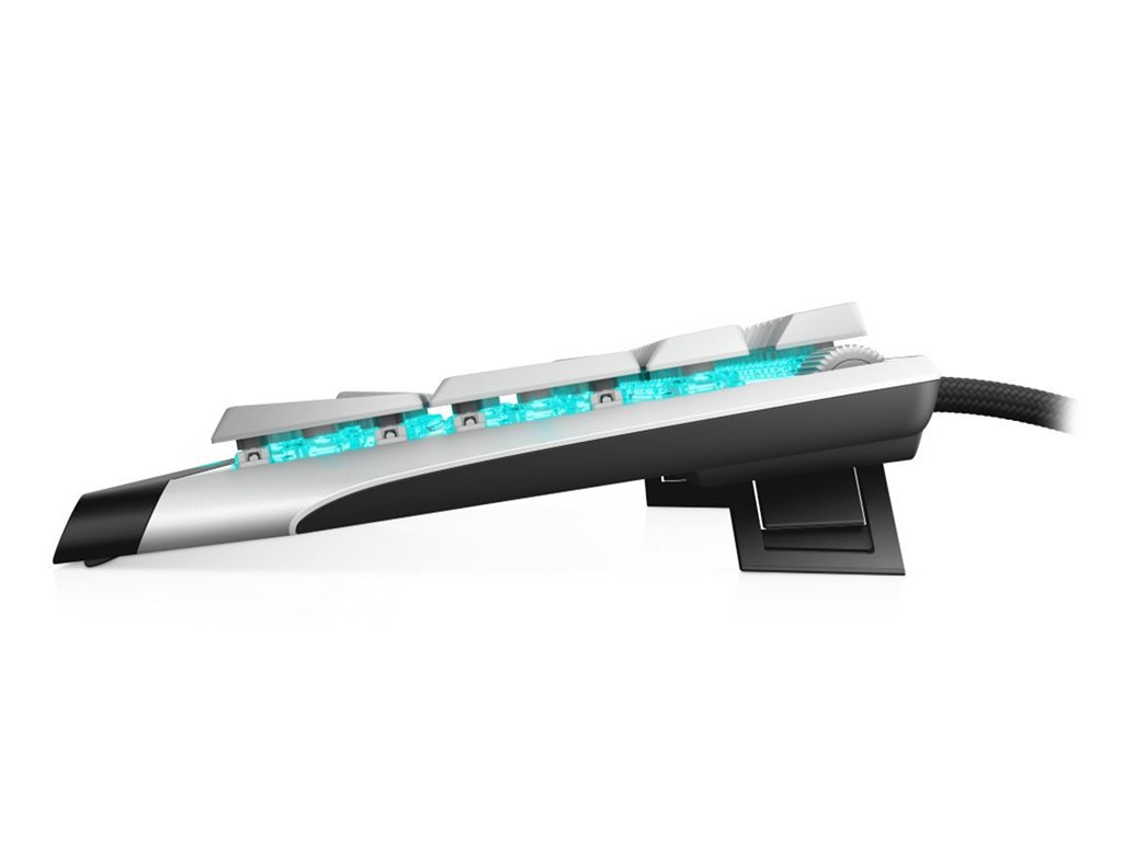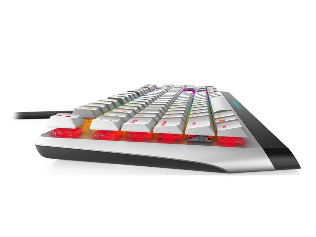 Mechanická klávesnice se spínači Cherry MX Red - nízký profil. Trvanlivost 50 milionů úhozů. Plně programovatelné klávesy. Vyhrazené ovládání zvuku. Délka kabelu 2 metry. RGB osvětlení AlienFX s 16,8 miliony barev. Anti-Ghosting/N-Key rollover. USB vstup.