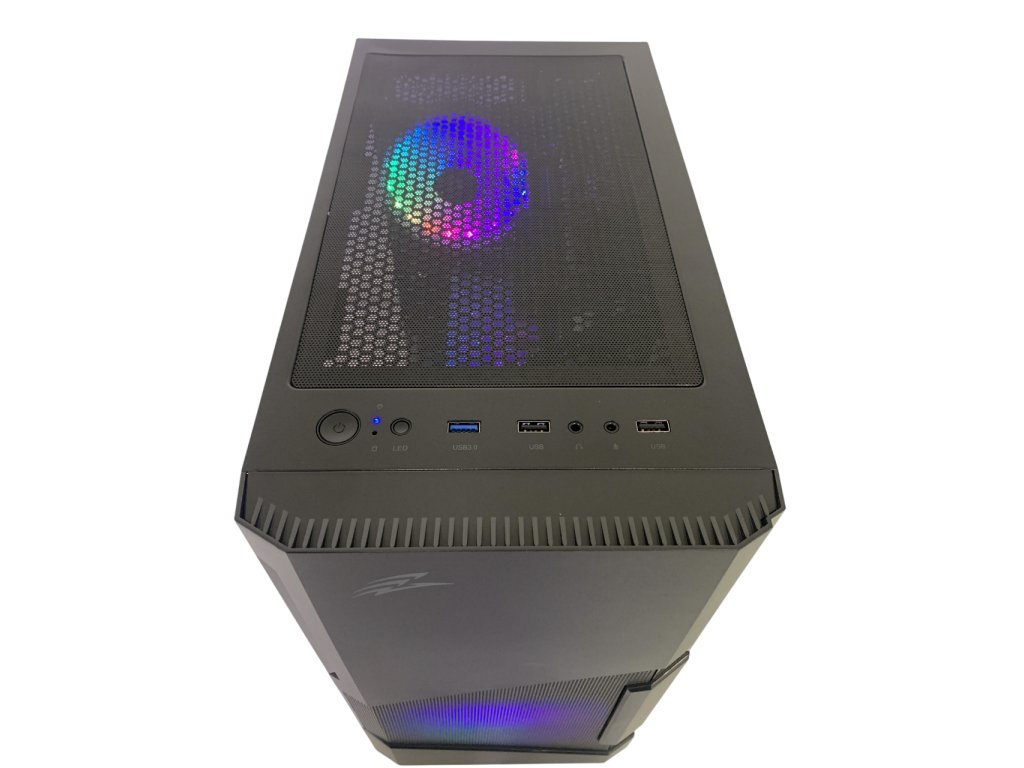Skříň : Evolveo M5 - obsahuje 2x RGB ventilátor, RGB podsvit lze měnit tlačítkem na Case, případně lze úplně vypnout