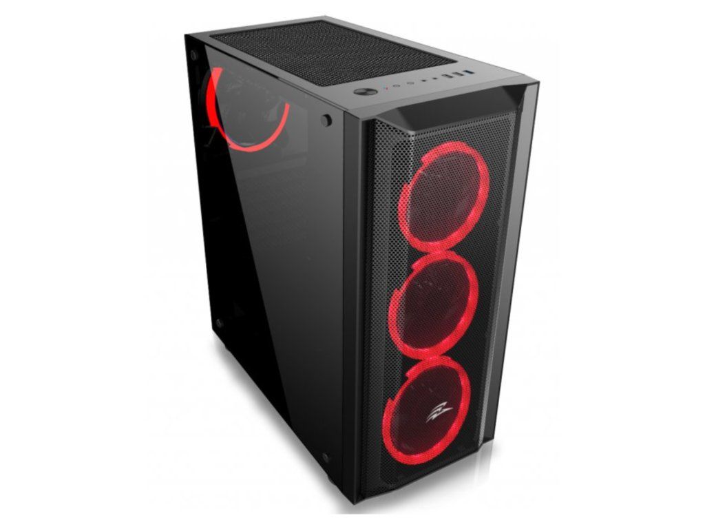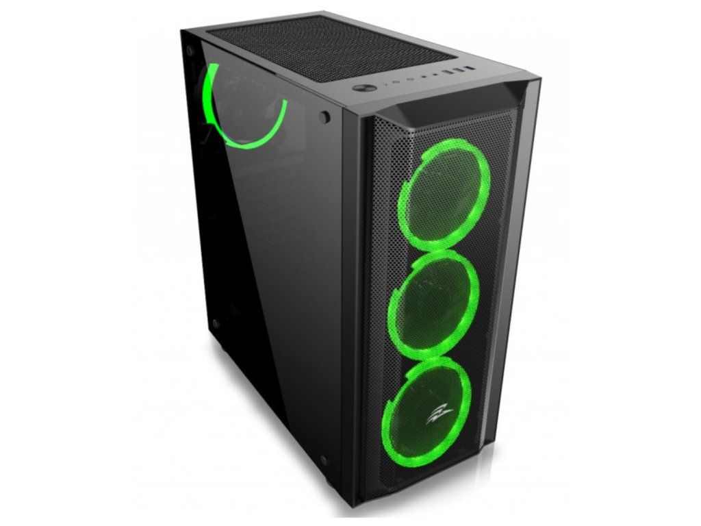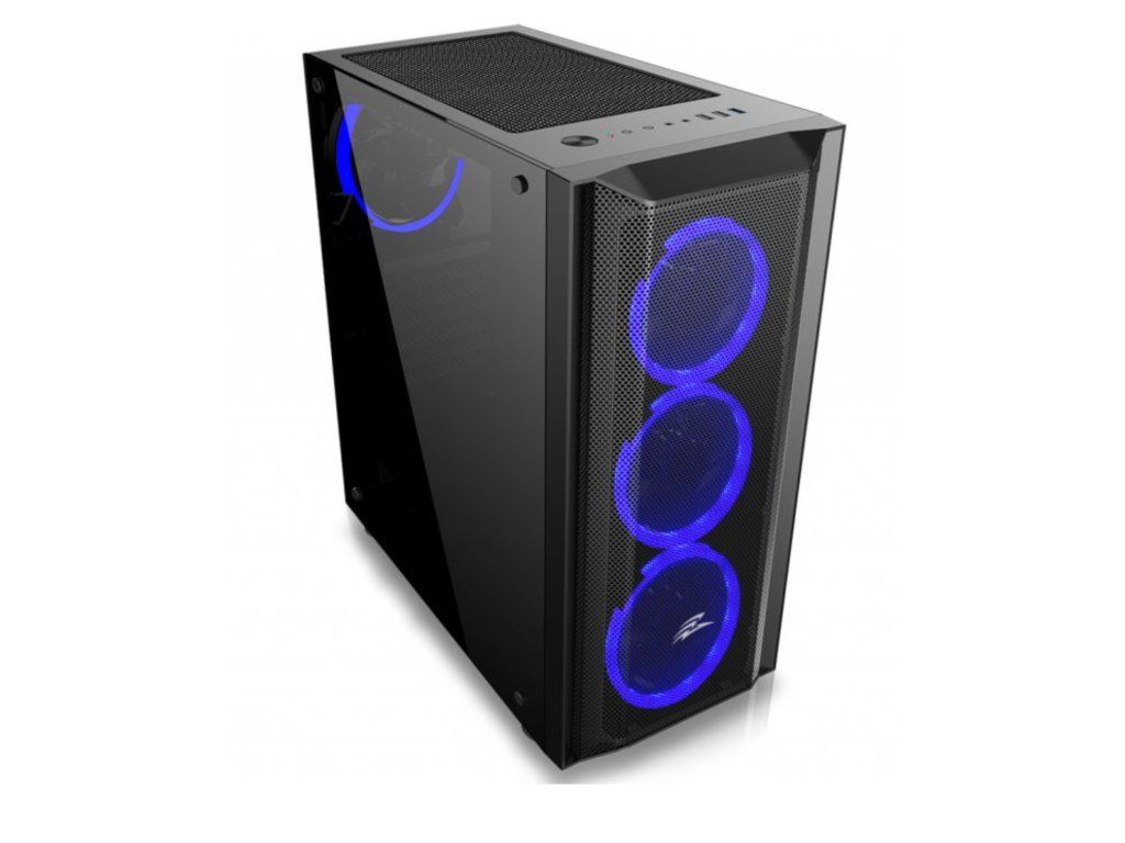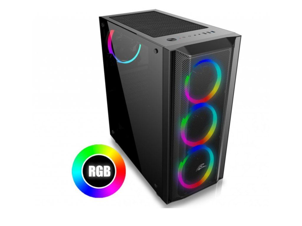 Case : EVOLVEO Ptero Q1, case ATX - Herní skříň s 4x RGB ventilátory. Podsvícení lze měnit pomocí tlačítka na skříni
