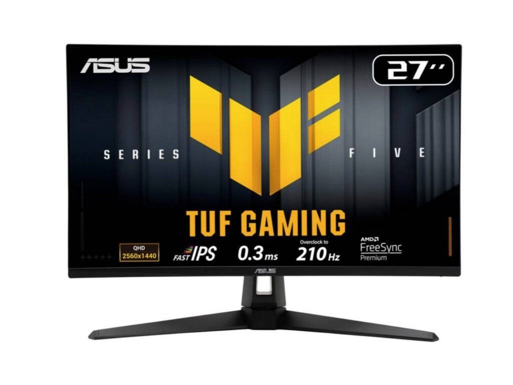 Asus TUF Gaming VG27AQ5A je 27palcový monitor s obrazovkou typu Fast IPS, která pracuje v rozlišení 2560 × 1440 (QHD) a formátu 16 : 9. Zobrazovací plocha o velikosti přibližně 596,736 × 335,664 mm nabízí jemný obraz díky rozteči bodu 0,233 mm. Matný povrch s antireflexní úpravou omezuje rušivé odlesky a LED podsvícení udržuje stabilní svítivost celé plochy. Panel zobrazuje 1,07 miliardy barev s pokrytím 130 % sRGB a 95 % DCI-P3, dosahuje kontrastního poměru 1300 : 1 a běžného jasu 300 cd/m2. Monitor používá technologii Low Blue Light, která snižuje množství modré složky světla a pomáhá udržet oči v pohodlí i při delším hraní. Funkce Flicker Free tlumí blikání panelu, takže obraz nepůsobí unaveně ani při dlouhodobém sledování. Certifikace TÜV Rheinland potvrzuje, že monitor splňuje náročné standardy pro bezpečné a komfortní používání.